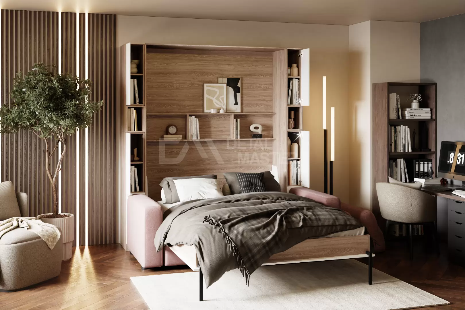 • Корпус и фасад шкаф-кровати, выполненный из ЛДСП;